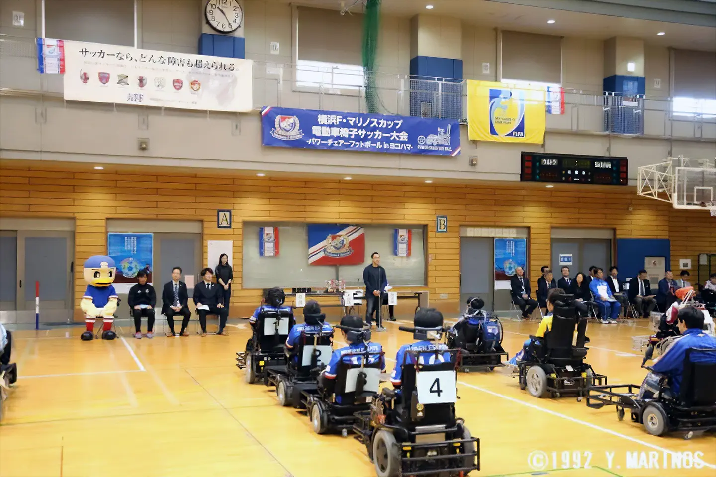 昨年、節目の第15回大会を開催したのですが、その前に電動車椅子サッカーのワールドカップが行われ、F・マリノスカップ第1回大会から参加されている2名の選手が日本代表に選出され、クラブとしてもホームゲームで、壮行会を行いました。