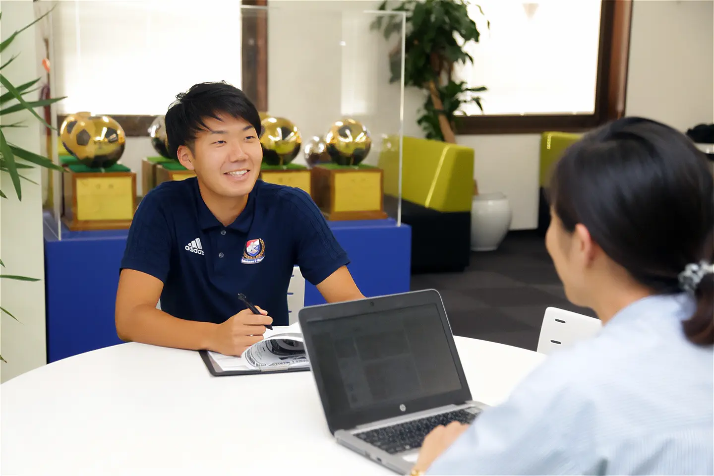 サッカー業界であればどこでも、というわけではないですけど、最初はクラブ一択では考えていませんでした。知り合いづてに、クラブスタッフや選手の代理人、スポーツブランドの方やイベント運営の方などさまざまな方とお話しさせていただいたのですが、直感的に自分はクラブで働くのがいいのかなと思うようになりました。自分にとって身近に感じたのが、Jリーグクラブだったというか……そこはもう本当に直感ですね(笑)。