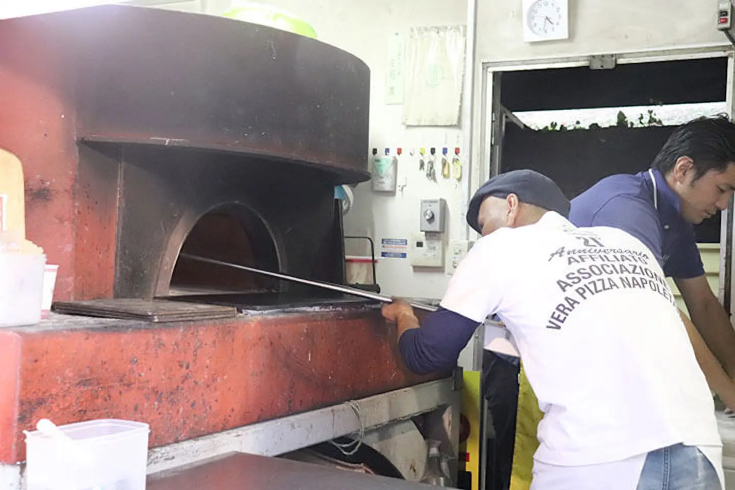 だいぶ本格的な石窯で、注文から数分で焼き上げてくれる。