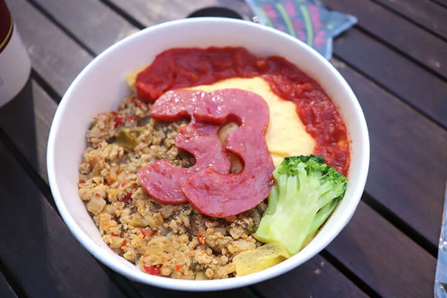 こちら。「森のキッチン」の人気メニュー、ガパオムライスなんかもあった。33のハムはよくわからないけど誰かの背番号だと思う。