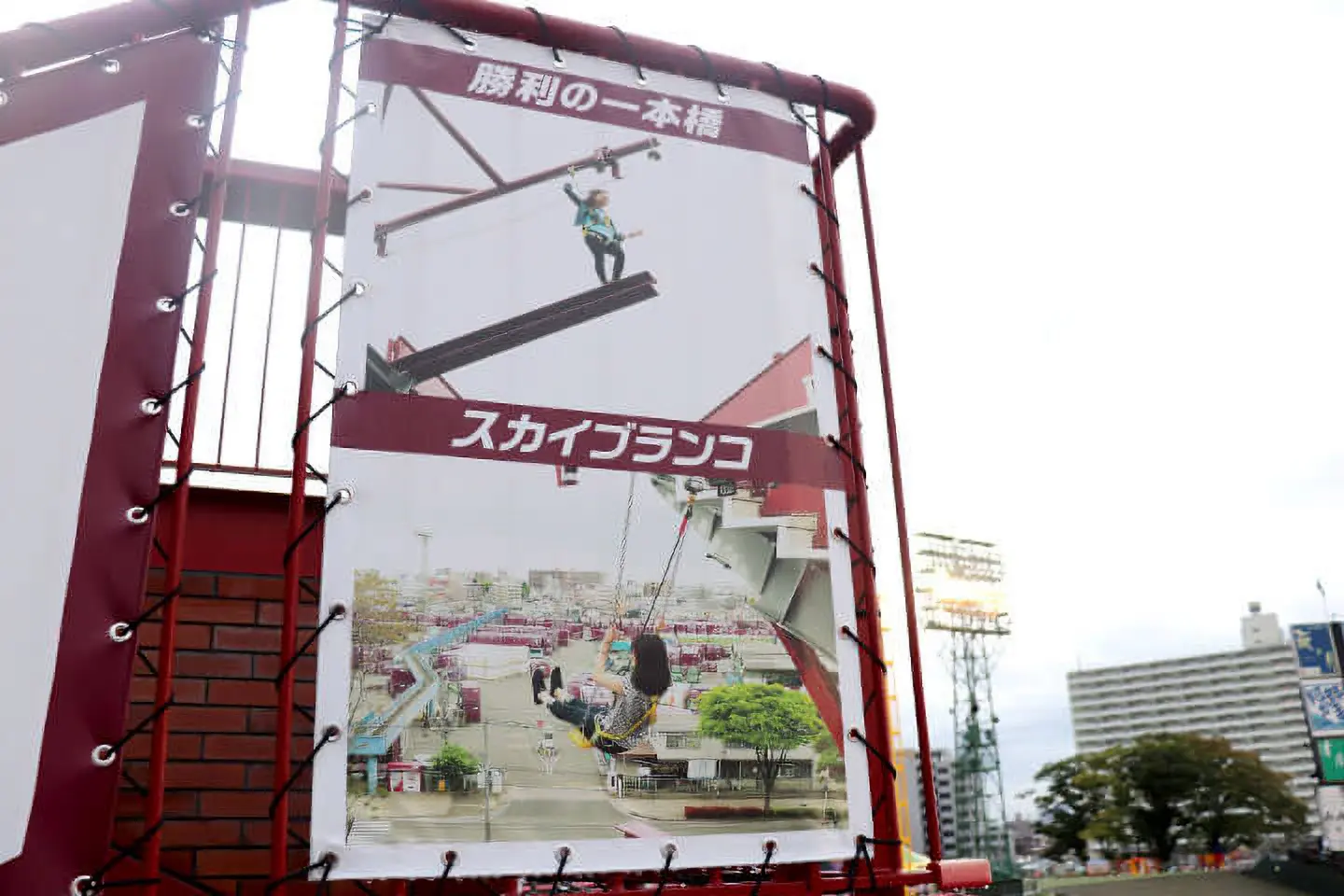 球場をバックにブランコに乗ってる不思議な写真がもらえました。怖さとよくわからなさでしっかり笑顔になった。