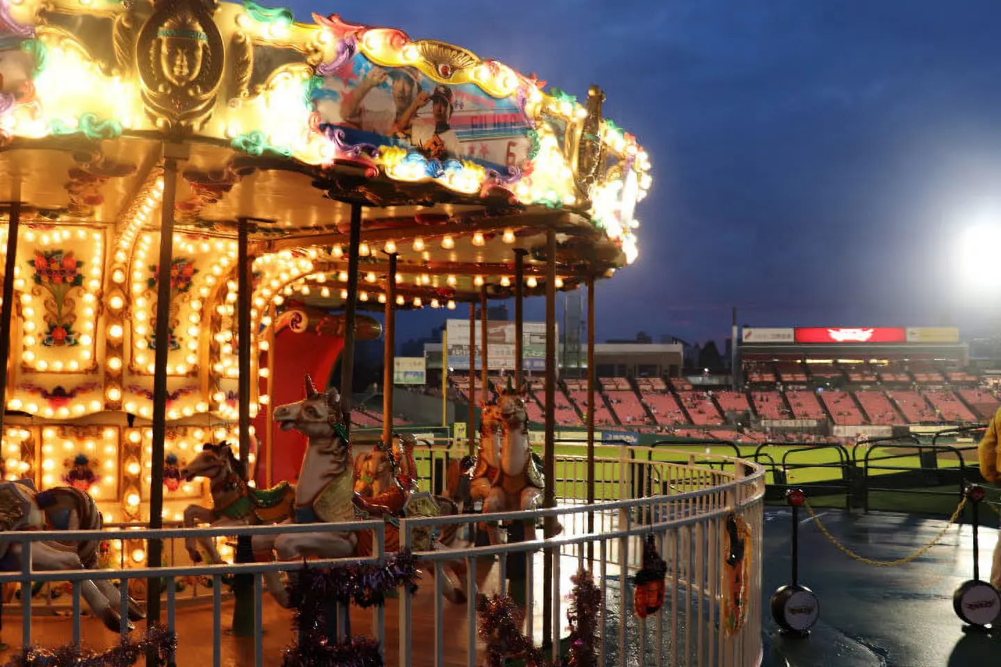 このメリーゴーラウンドと野球場の構図がキレイだった。町づくりゲームで失敗した時みたいな配置だけど、実際に見るとなんて美しい。
