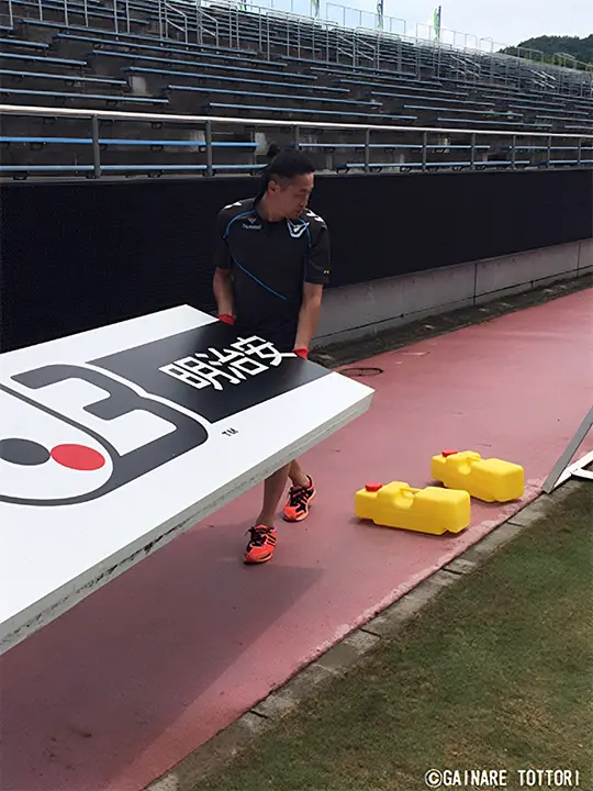 まだ小さなクラブで、試合時は岡野さんも設営を手伝う[写真]ガイナーレ鳥取