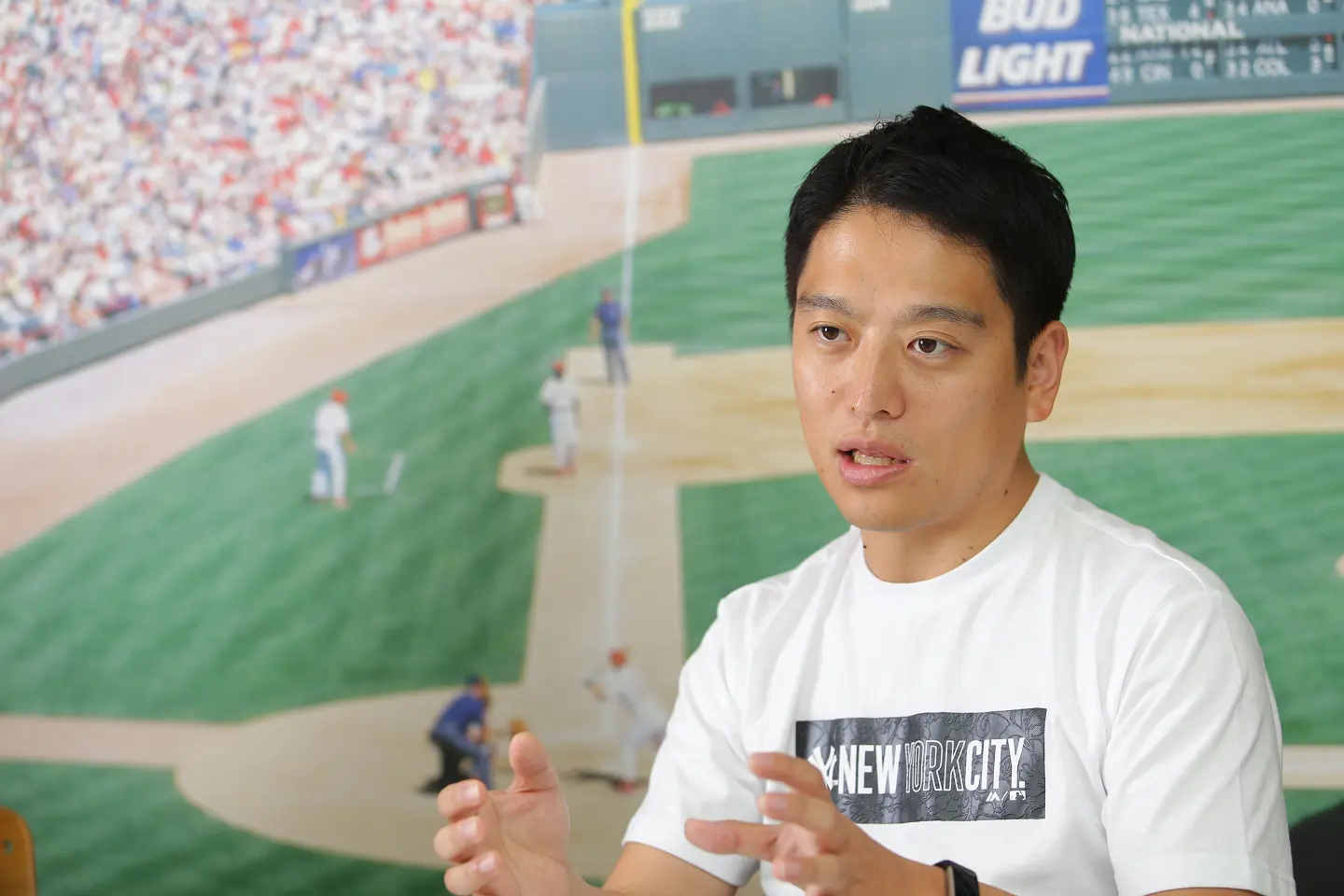 小学生のときに1年ぐらいアメリカのテネシー州ナッシュビルにいたんですけど、そのときに野球やバスケットボール、アメフトなどいろいろなスポーツを観たりやったりして育ちました。