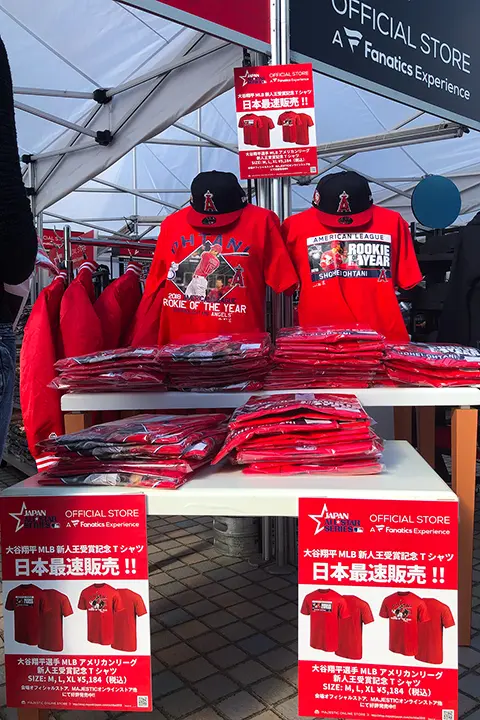 2018年11月の日米野球開催時に大谷翔平の新人王獲得が決まり、即座にグッズを製作して販売。短時間で完売した[写真]ファナティクス・ジャパン