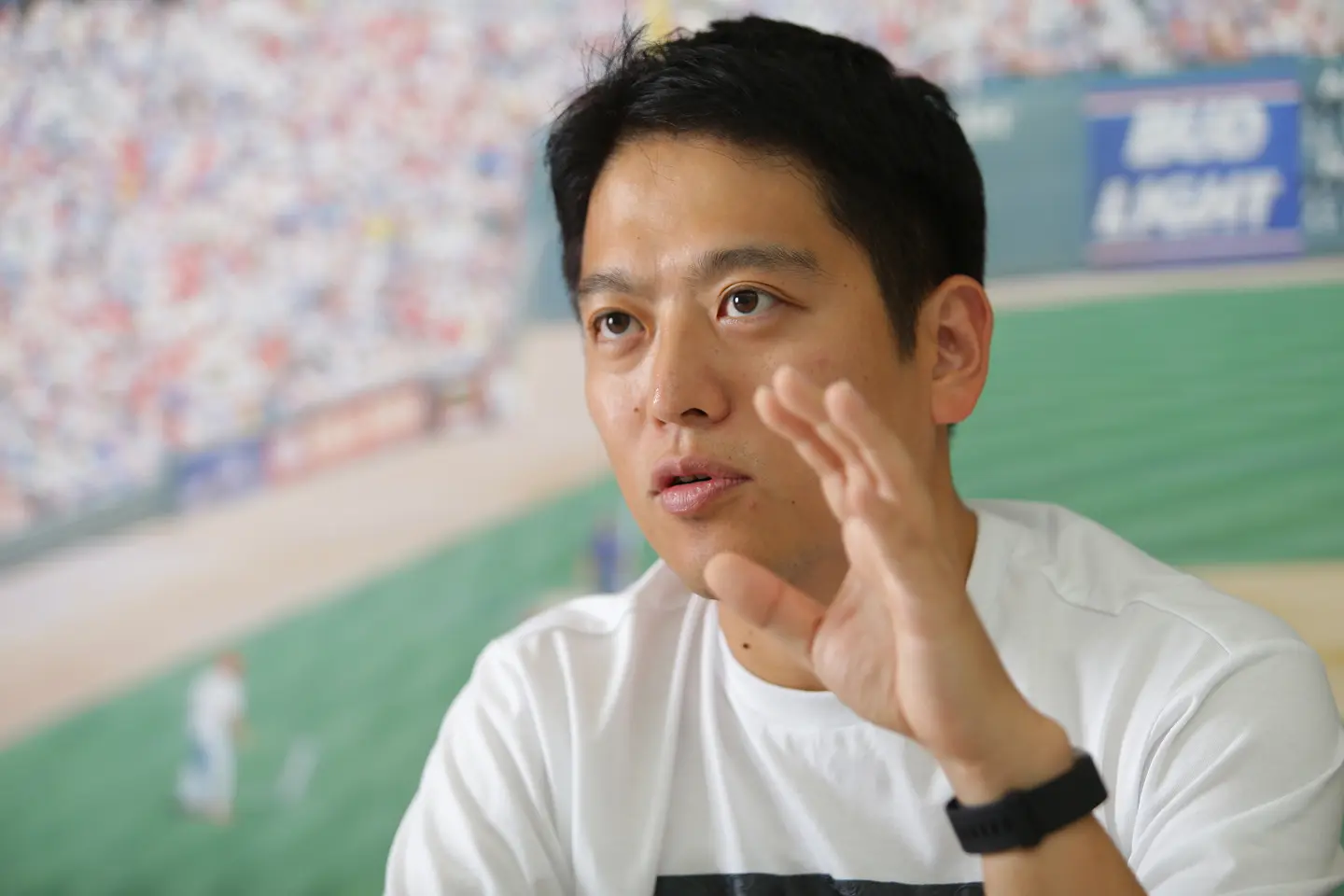 福岡ソフトバンクホークスとのビジネスを皮切りに事業拡大をめざす[写真]兼子愼一郎