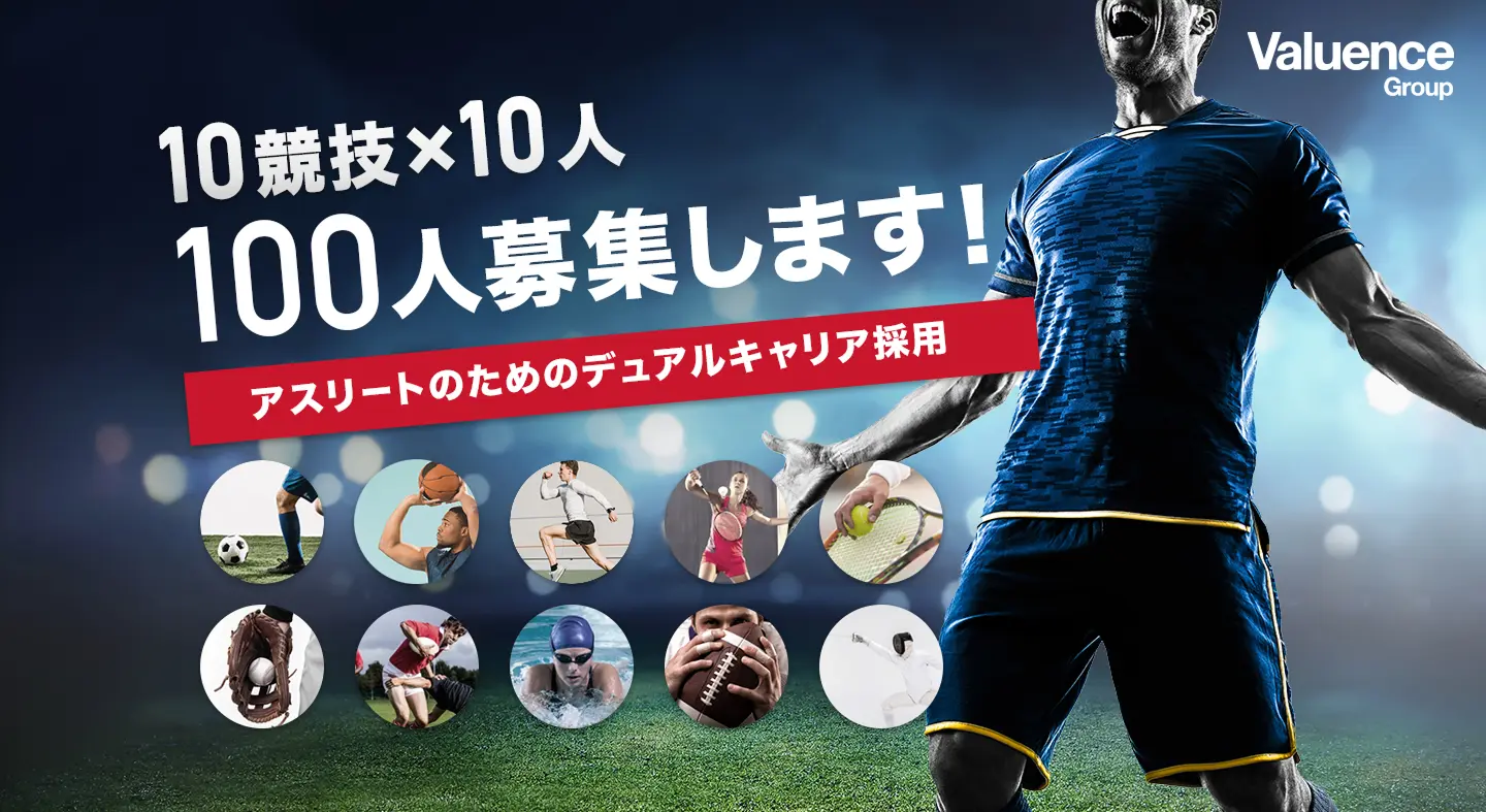 2020年9月、バリュエンスグループはアスリート100人の採用を打ち出した。アスリートに対し、バリュエンスグループで働きながら競技活動を継続できるサポートを提供する。採用後の職種は、買取専門店のコンシェルジュ、カスタマーサポート、品質管理スタッフ、商品管理スタッフなど多岐にわたる。このプロジェクト発足のきっかけは、新型コロナウイルスの感染拡大によってもたらされた、スポーツ界への打撃だった。