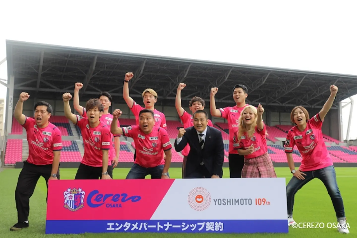 2021年、セレッソ大阪は吉本興業株式会社との「エンタメパートナーシップ契約」を締結。スポーツとエンターテインメントの融合による新たなシナジーをねらう[写真提供]セレッソ大阪