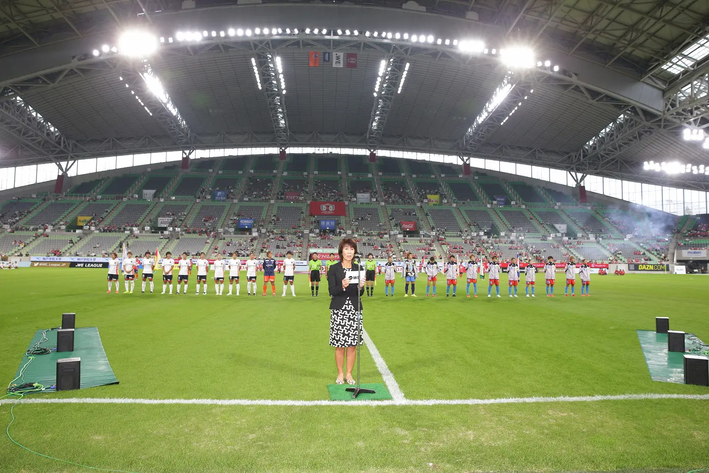 2021年9月WEリーグ開会式の様子。「アンセムが流れたときは感動的でした」と小林さんは語る。[写真提供]WE LEAGUE