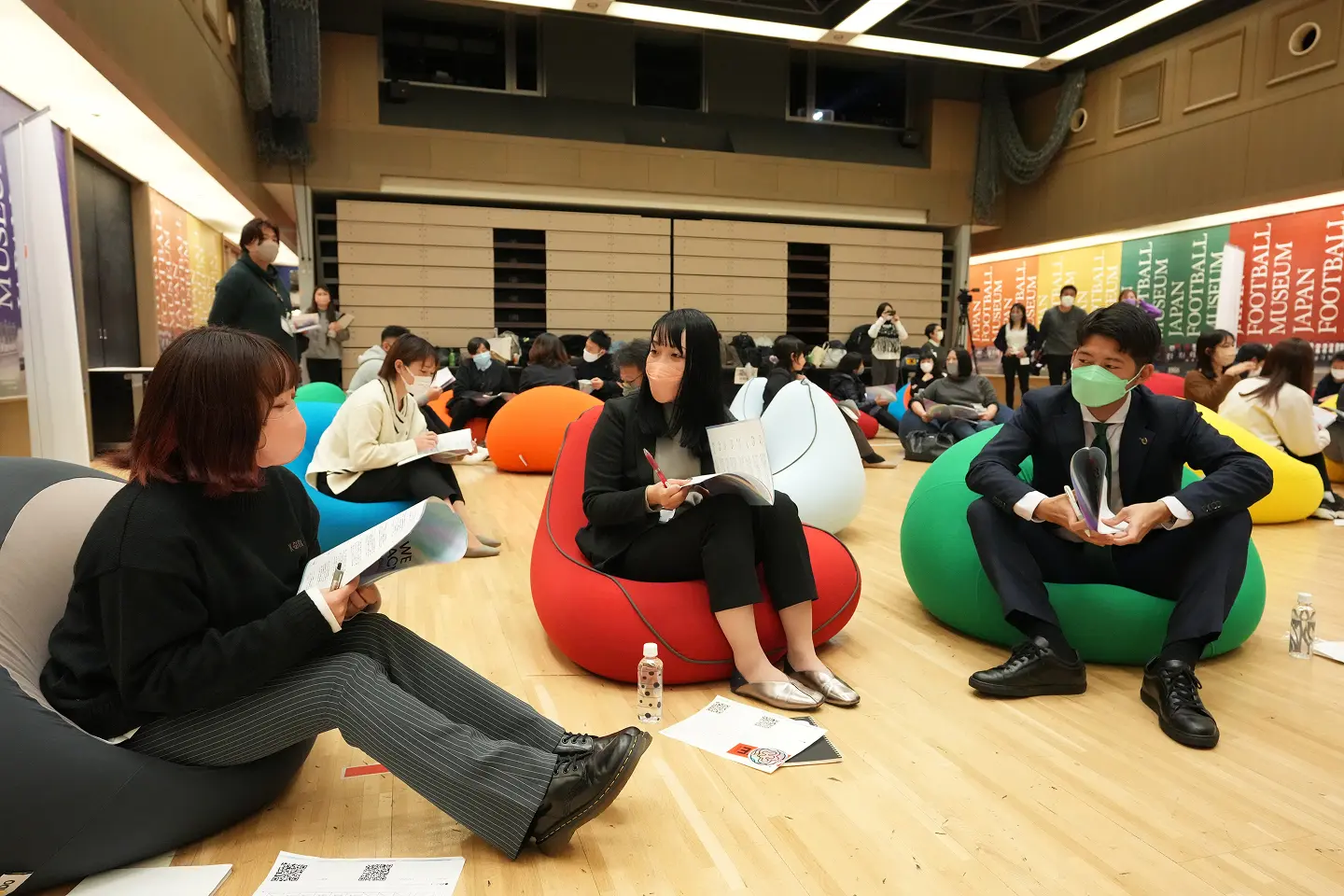 WEリーグ選手および理念推進担当者とパートナー企業の社員が、ジェンダー課題について意見を交わし合った『WE ACTION MEETING』の様子[写真提供]WE LEAGUE
