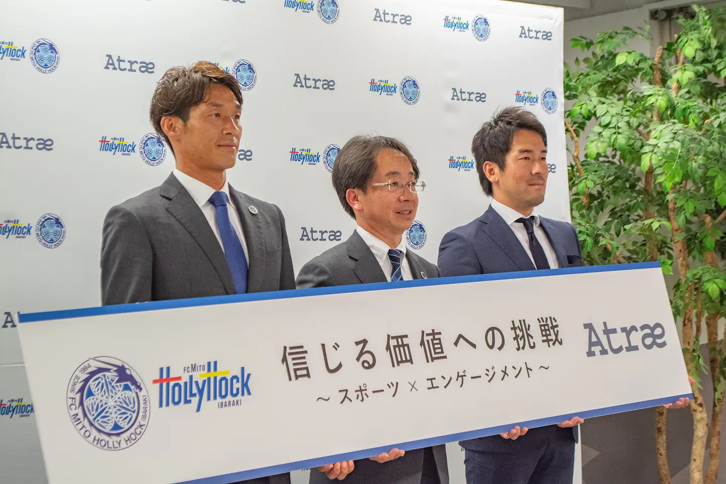 2019年、アトラエはJ2・水戸ホーリーホックとの資本業務提携とユニホームパートナー契約締結を発表した[写真提供]アトラエ