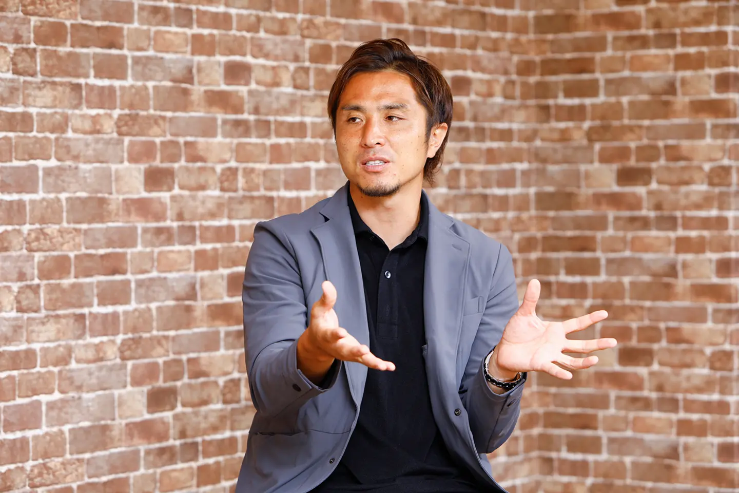 カテゴリーを問わずさまざまな業界との関わりを持つ播戸さん。「サッカー界だけでなく、スポーツ界全体で連携していくことにチャレンジしたい」と話す[写真]冨田峻矢