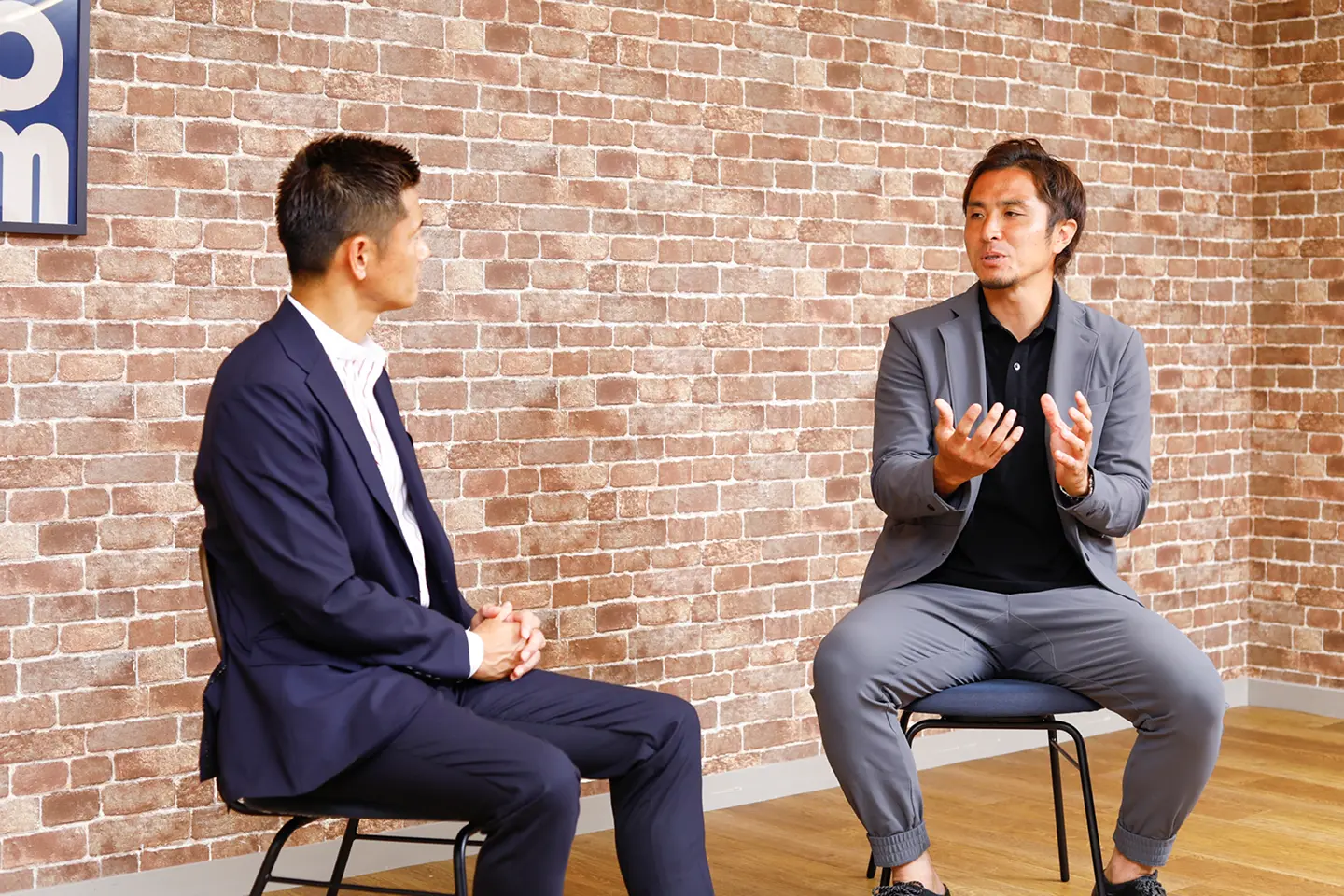 元Jリーガーの事業家としてビジネスの世界で活躍する二人。それぞれのスタイルでスポーツ界の発展に寄与していく[写真]冨田峻矢