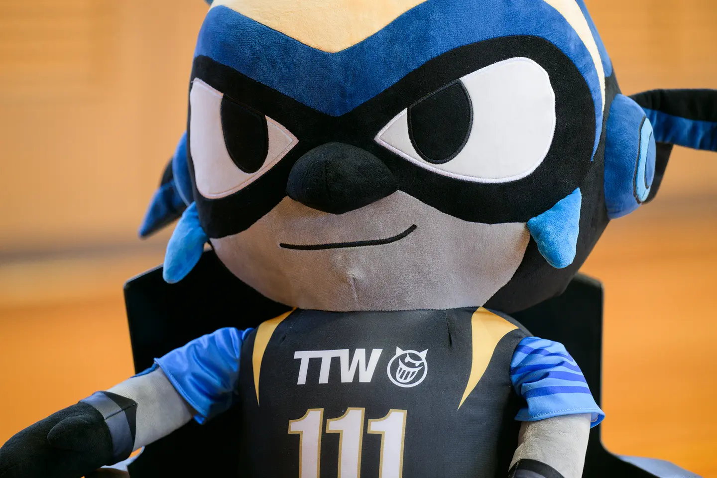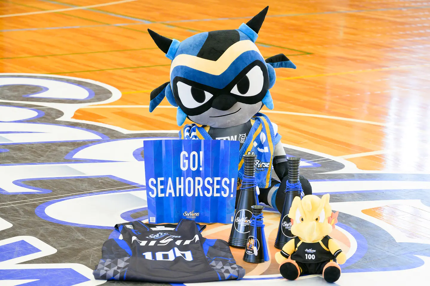 おっしゃるとおり、コラボによる新規ファン獲得という点では、タツヲの存在も大きいですね! 彼はシーホース三河の“公式風”マスコットとして加入し、現在は「所属タレント」という位置づけです。大胆不敵、かつコミカルな言動が話題を呼び、Bリーグのマスコットの中では、断トツのSNSフォロワー数を誇っています。その人気の高さと功績が認められ、Bリーグ以外のキャラクターはもちろん、地元の鉄道会社をはじめ、さまざまな企業とのコラボが実現しています。そればかりか、愛知県刈谷市(ホームタウン)の広報大使“見習い”という大役まで仰せつかっているんです。目の前にいるので言いにくいですが…、公式マスコットキャラのシーホースくんより人気があるかも(笑)。シーホース三河とBリーグ、そしてBリーグと他業界をつなぐ架け橋として、今日もまた個性を爆発させながら活動を行ってくれています。