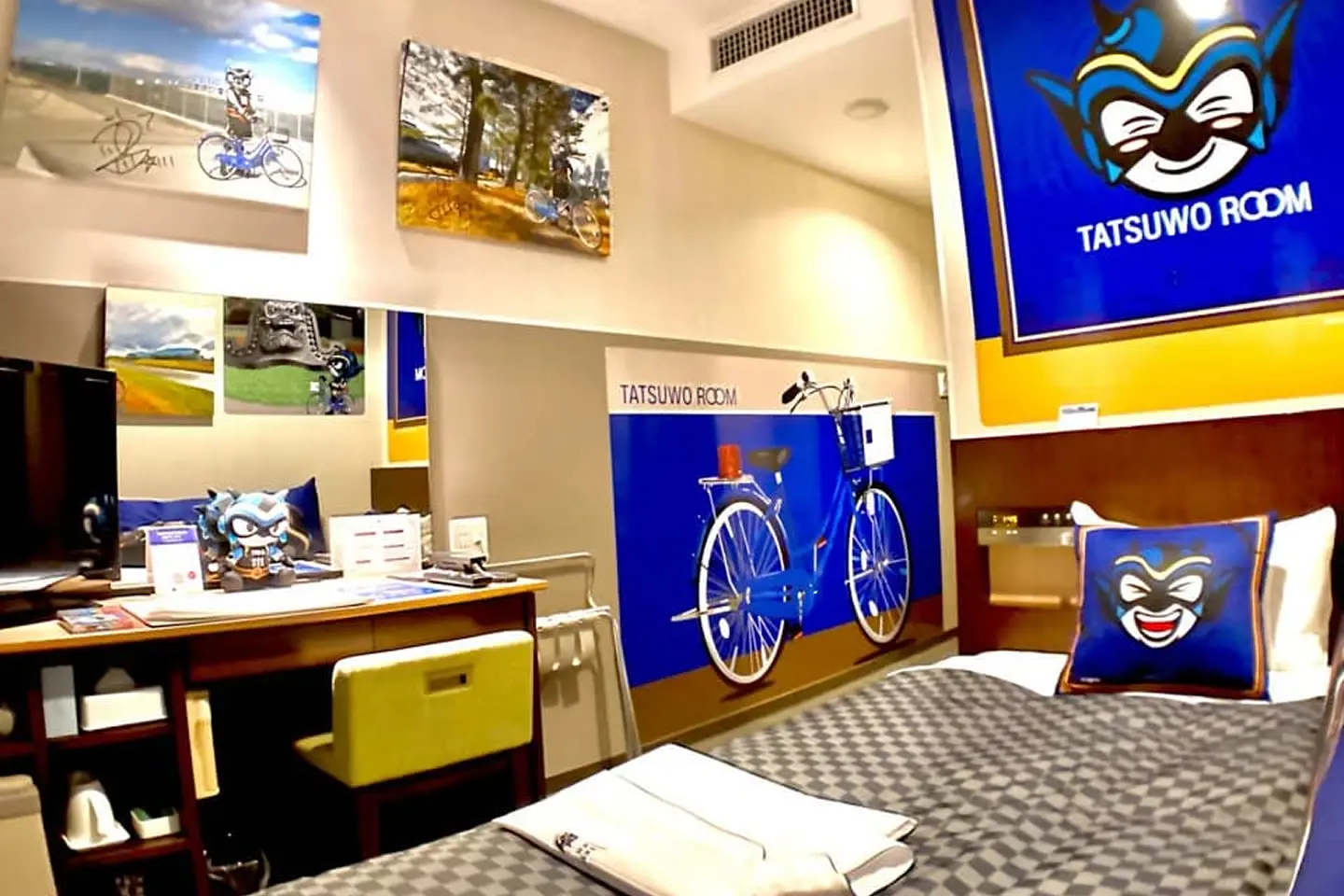 タツヲのコーポレートパートナー・名鉄イン刈谷とのコラボで実現した「タツヲルーム」。業界の垣根を超えたコラボは、今後も積極的に実施予定とのこと[写真提供]シーホース三河