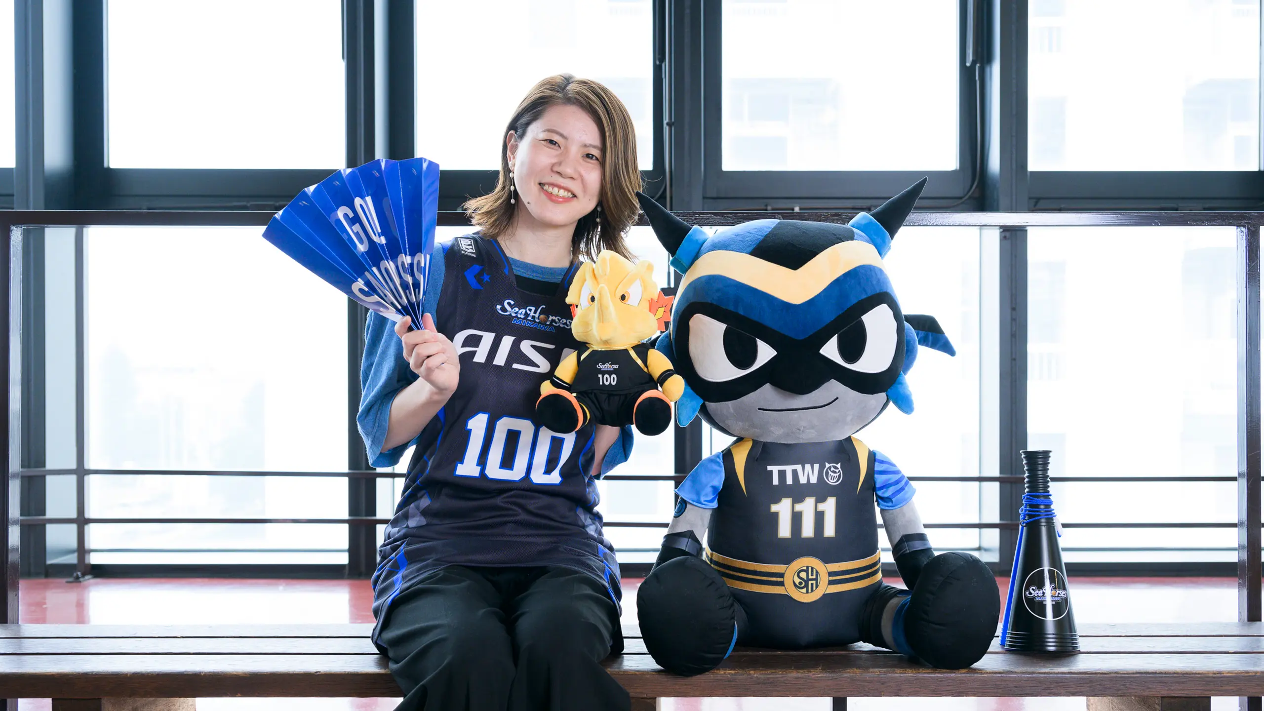 バスケットボールという競技にも、三河という土地にも無縁の鈴木さんが、思いがけないカタチで出会ったB.LEAGUE(以降、Bリーグ)・シーホース三河のグッズ企画・販売という仕事。最初は単なるモノだと思っていたグッズ。ただ、つくり手になって気付いたのは、アイテム一つひとつにプロスポーツ界を支えるチカラが秘められているということ。そんな新たな気付きを得て鈴木さんに芽生えた目標は、「シーホースを三河のシンボルに」です。