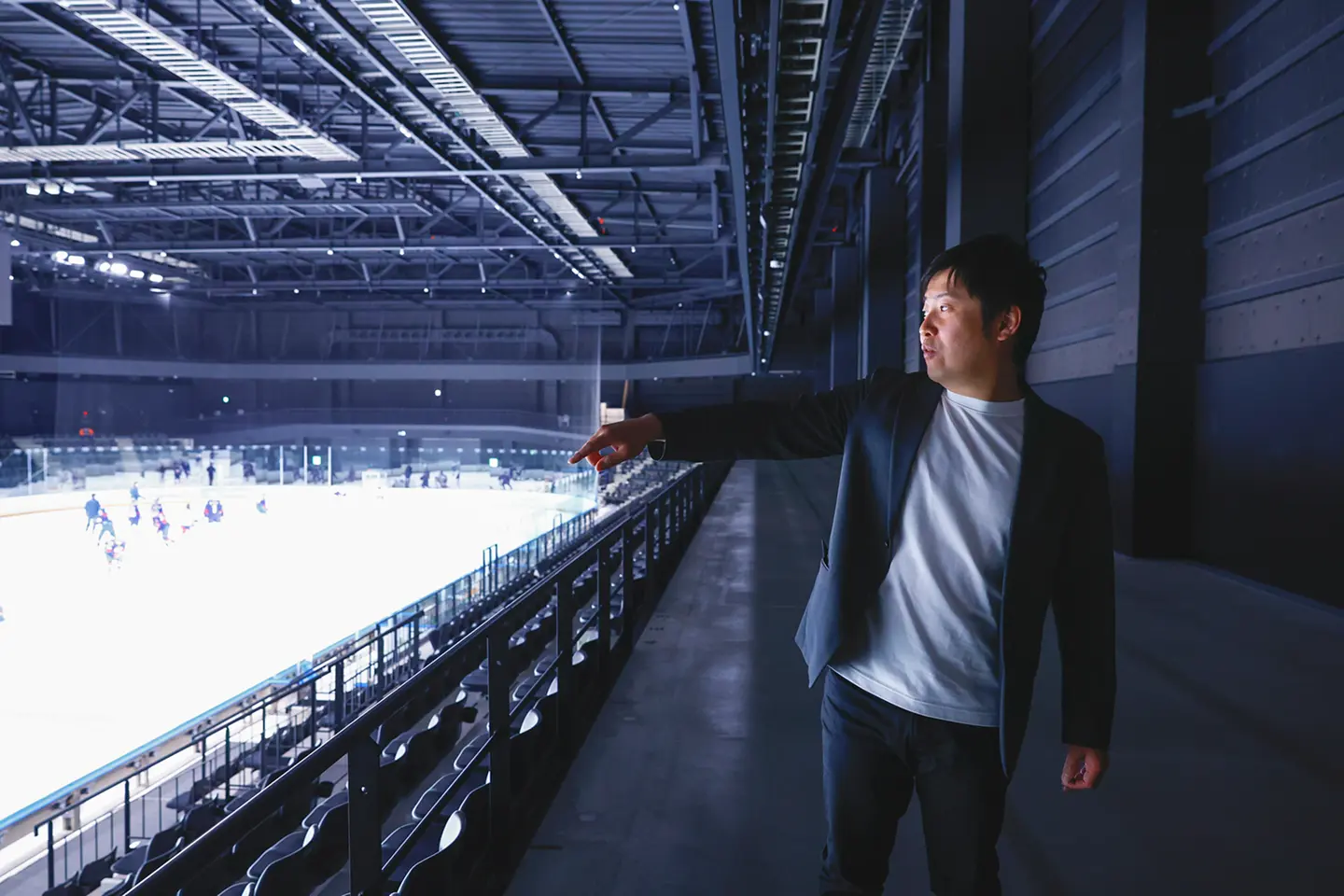 名前のとおり「フラット」をコンセプトとして、誰にでも開かれた“真の多目的空間”であることを大事にしています。アイスホッケーやアイススケートを中心としたスポーツの競技者はもちろん、小学校の授業で子どもたちに利用してもらったり、地域行事に活用してもらったり、スポーツ施設の枠にとどまらない地域共生型の拠点です。もっとも特徴的なのは運営方法ですね。全国でも前例のない、新しい官民連携のモデルを築いています。