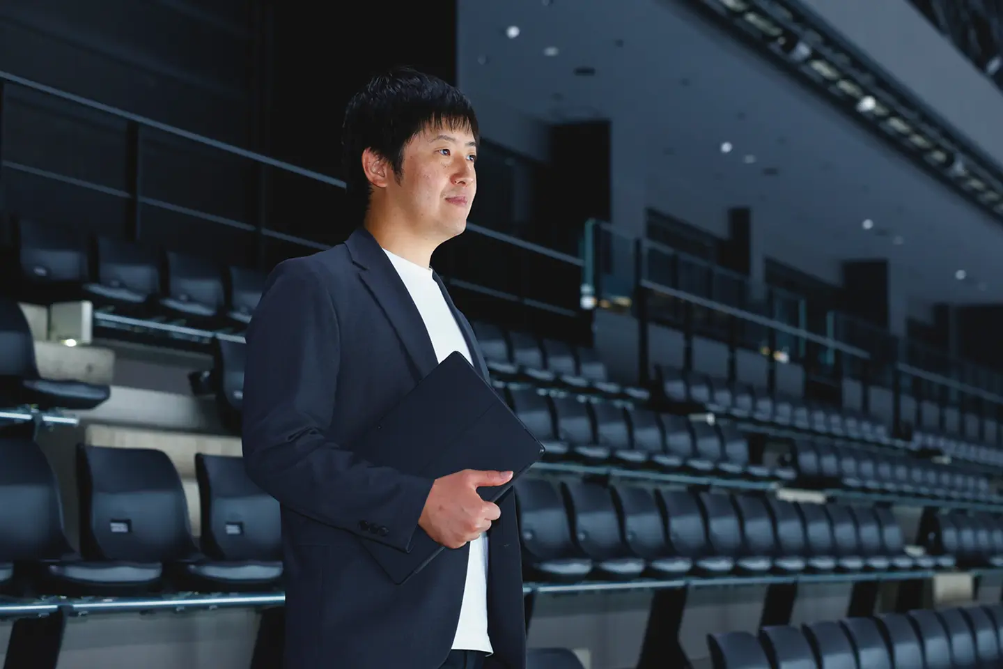 ええ、地元である八戸には愛着があって、自分の生まれ育った土地に何か貢献したいなと。子どもが生まれたことも、その思いを強めたきっかけでした。八戸って、大人になって仙台や東京に移っていく人が多いんですよ。それは私の世代からずっと。子どもたちが将来も残りたいと思ってくれるような魅力ある地元にできたらいいなと考えるようになりました。そうして地域に貢献できる仕事を探していた時期に、たまたまdodaで見つけたのが、クロススポーツマーケティングが出していたFLAT HACHINOHE館長候補の求人でした。アリーナを核として地域や社会の活性化をめざしていることを知り、こんな挑戦ができる機会はほかにないと感じました。