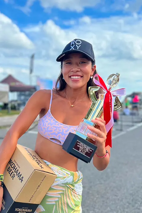 NSA理事でありながら、現役女子プロサーファーとして国内外で活動する大村さん。2023年の国内プロツアーでも数々のトロフィーを獲得した[写真]本人提供