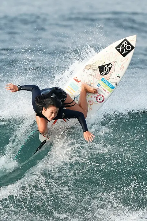 湘南・鵠沼をホームに、女子プロサーファーとして世界ツアーを中心に活動中。13歳でジュニアの日本代表に選出、数々の大会で実績を残し、17歳でプロ選手のライセンスに合格。JPSA2010年ルーキーオブザイヤー、年間グランドチャンピオンを獲得。第一線で活躍しながら、日本サーフィン連盟初の女性理事に就任。また、ジュニア日本代表のコーチ、試合の解説、講演など幅広く活躍中。