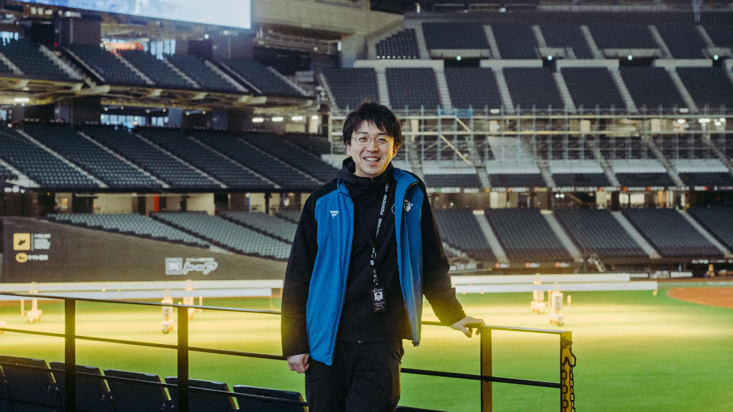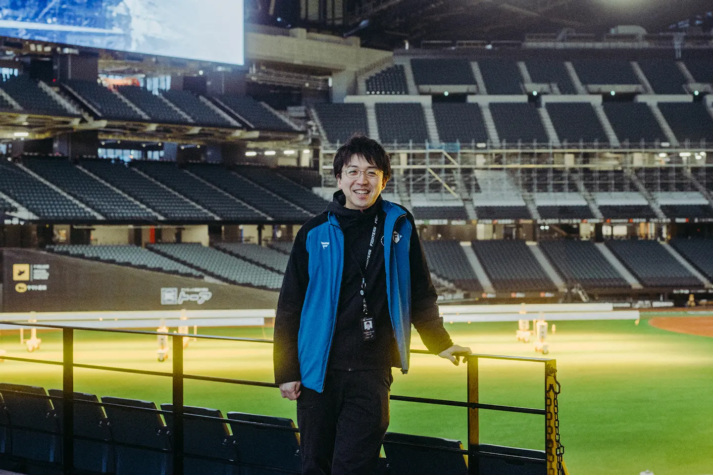 転機となったのはアメリカ駐在です。アメリカで一通りの仕事を経験して帰国するタイミングに、北海道在住の義母から「こんな求人がバズってるよ」と教えてもらったんです。ファイターズが「スギ花粉が少ない!」といった北海道の良さをユーモアたっぷりにアピールして、新球場に向けた中途人材をオープンに募集していました。ぼく自身も北海道出身なので最初は興味本位で応募しましたが、内容を知るほど、「こんなプロジェクトに出会えるチャンスは一生に一度あるかないか」だと思い、ご縁を信じて思い切って飛び込んでみました。面接官の「コアなファンだけでなく、もっと幅広い客層に対して事業展開する」という言葉にも背中を押してもらいました。