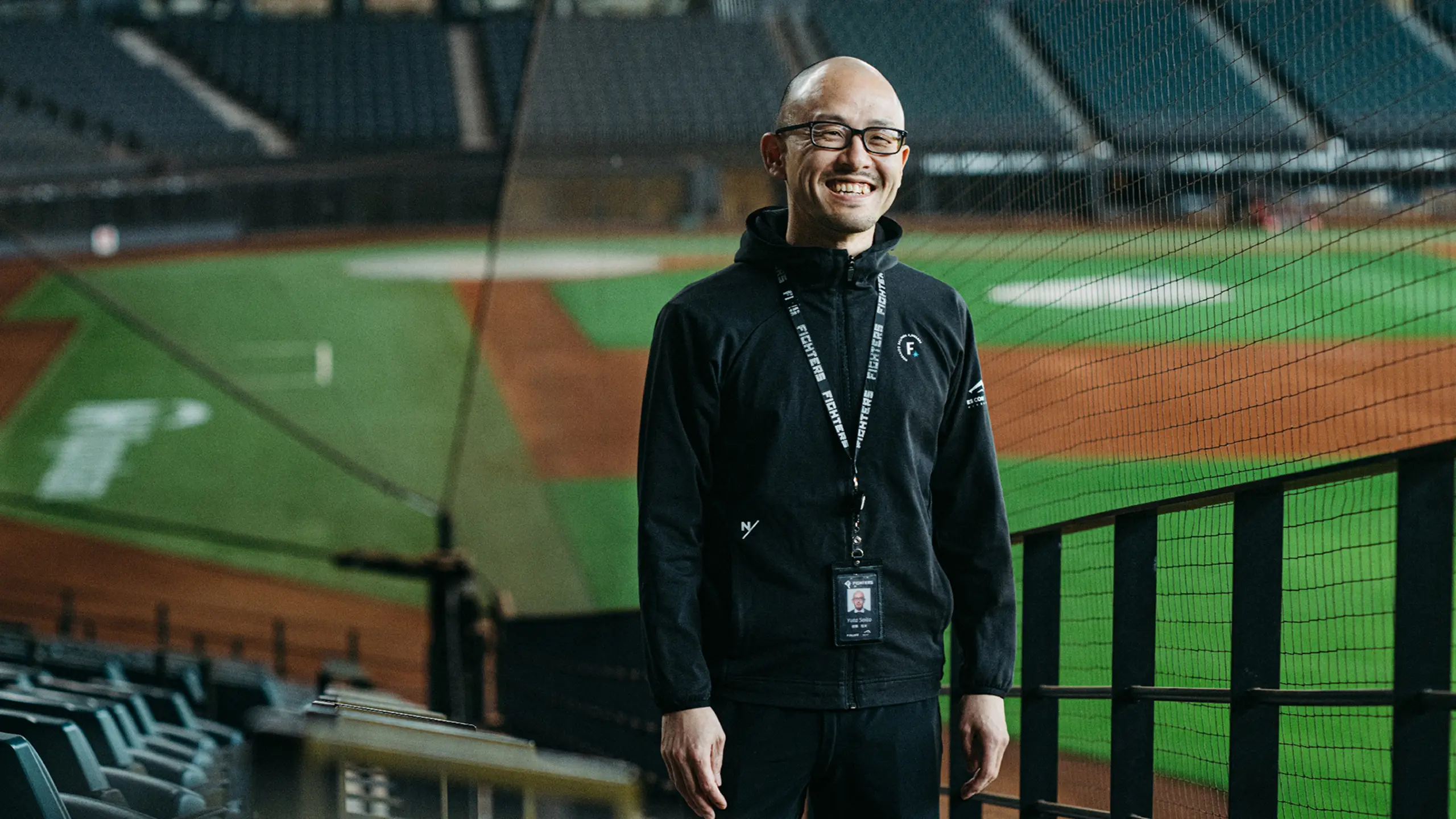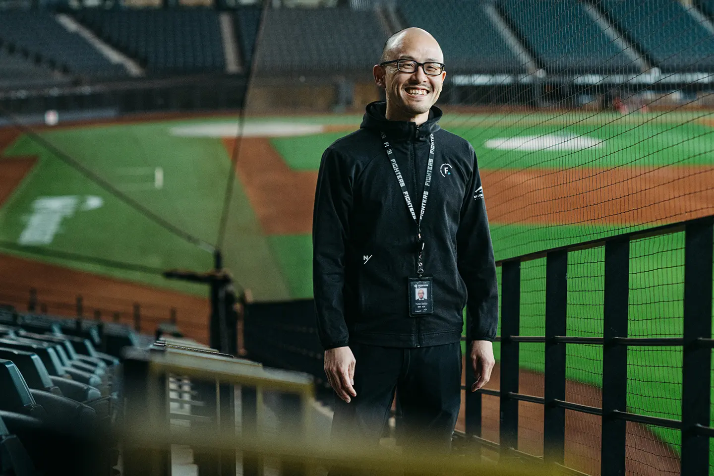 私は北海道日本ハムファイターズの新球場「エスコンフィールドHOKKAIDO」の施設管理・運営を担当しています。12社のパートナー企業と力を合わせて、建物や設備などのハード面の管理から、エネルギー、物流、警備、清掃、空調、除雪、駐車場の運営を通じ、選手に快適なプレー環境を、お客さまに快適な観戦環境をお届けするのが仕事です。