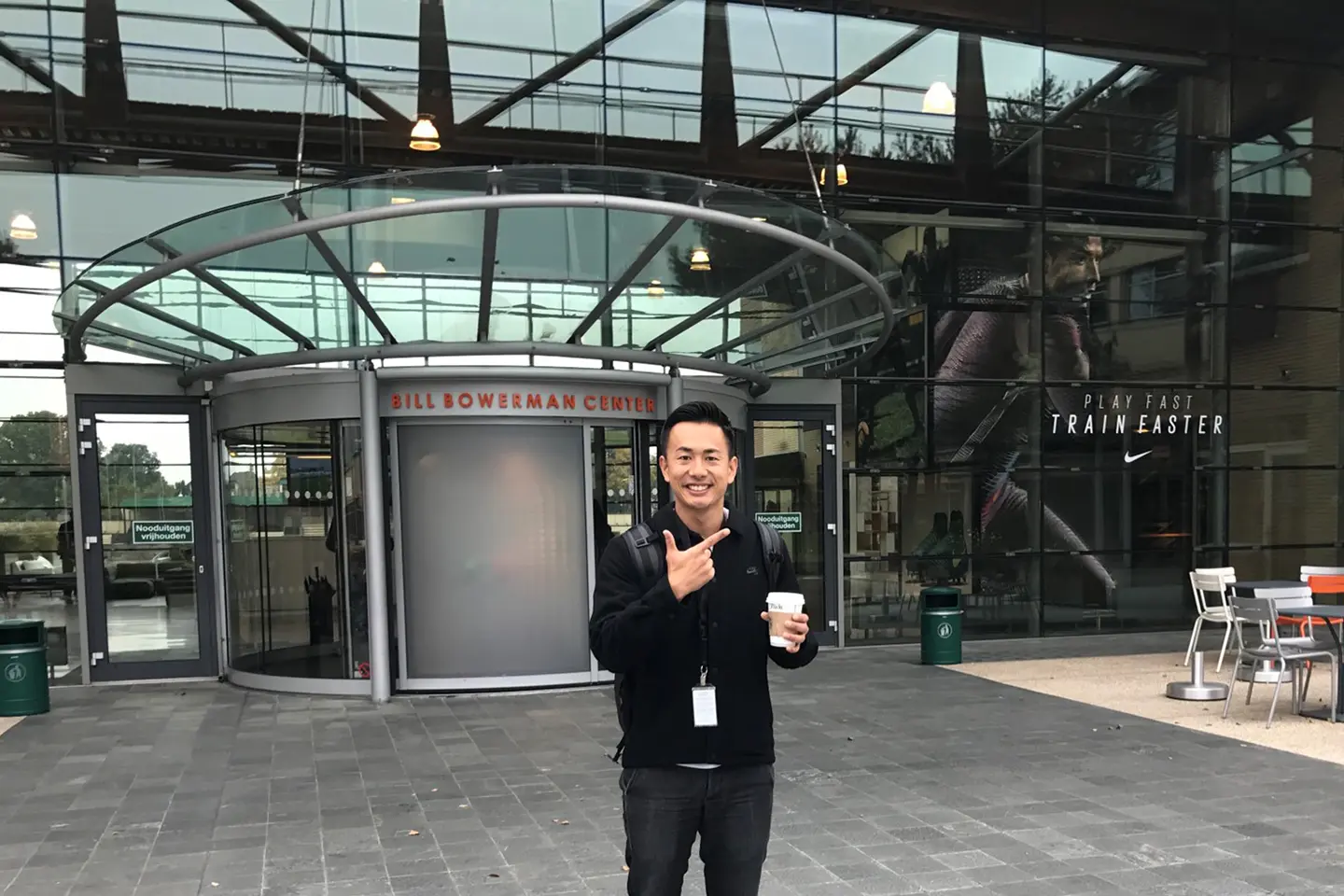 ナイキジャパンでの海外出張時の一枚。プロアスリート時代の経験と人脈を活かし、事業拡大に貢献した[写真]本人提供