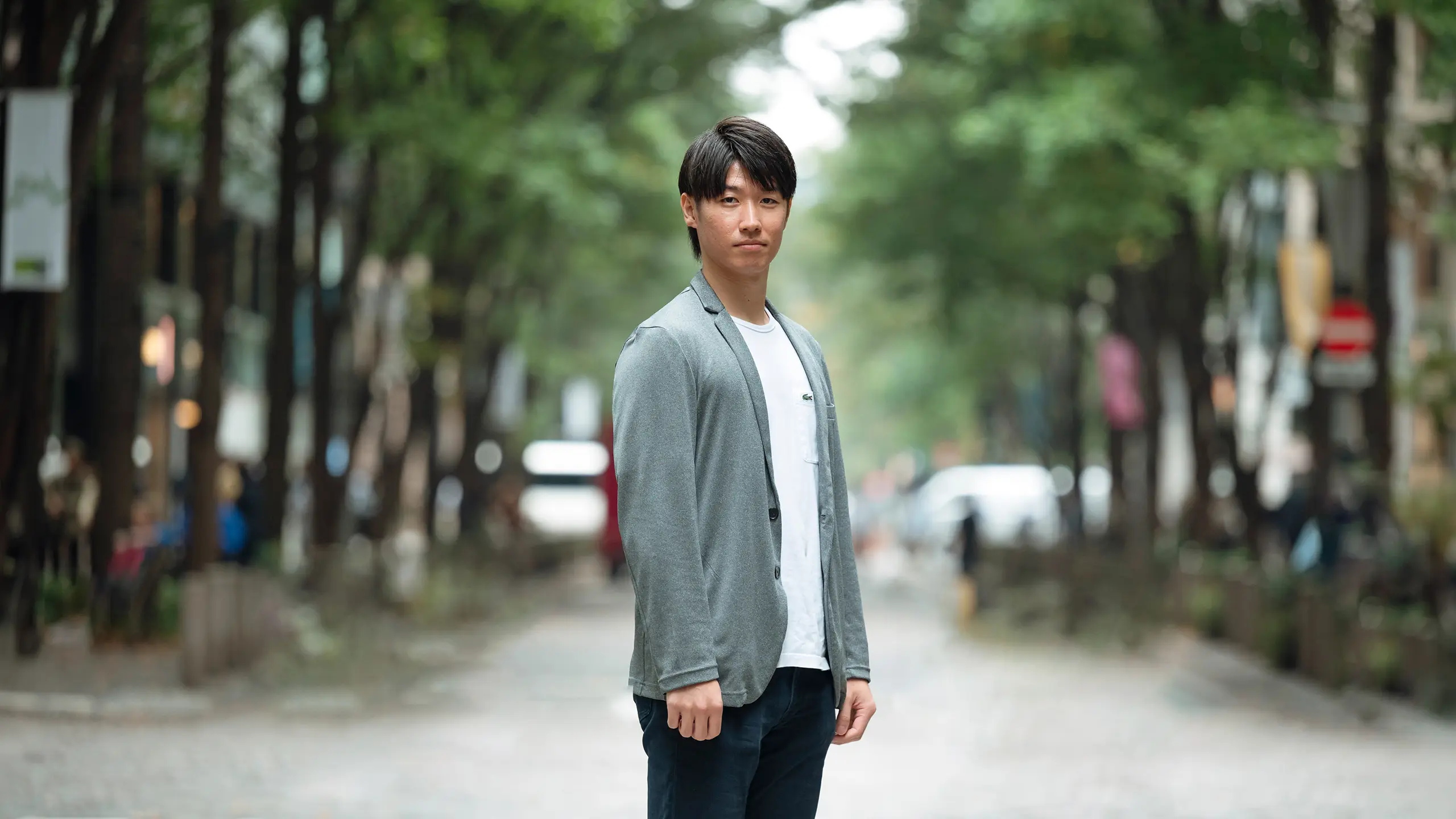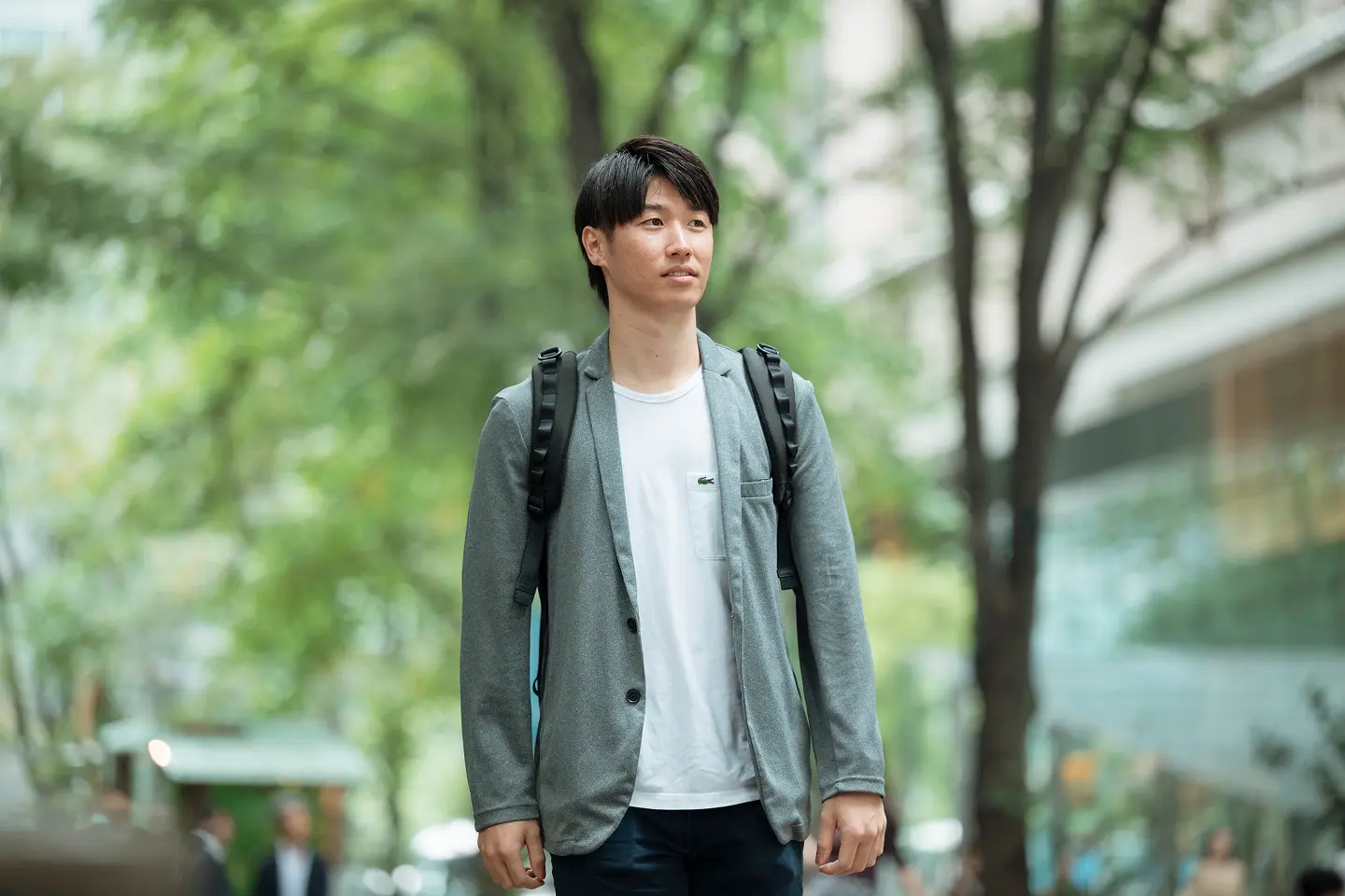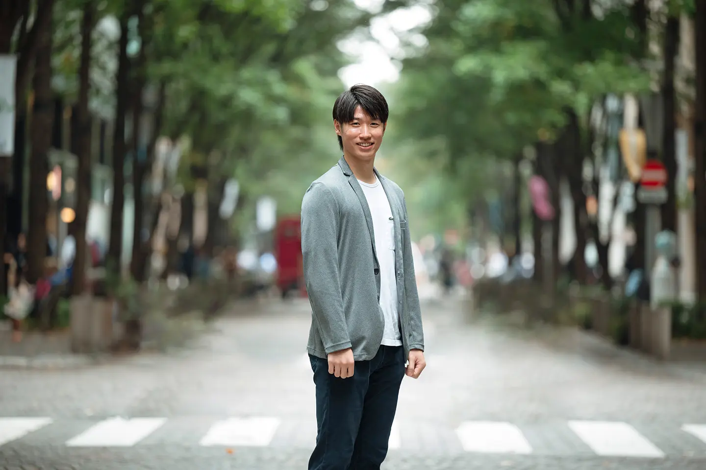 「営業のプレゼンみたいな説明をしていたので、今の仕事の練習ができていたとポジティブに考えています(笑)」と転職活動中のことを笑顔で振り返った[写真]渡邉彰太