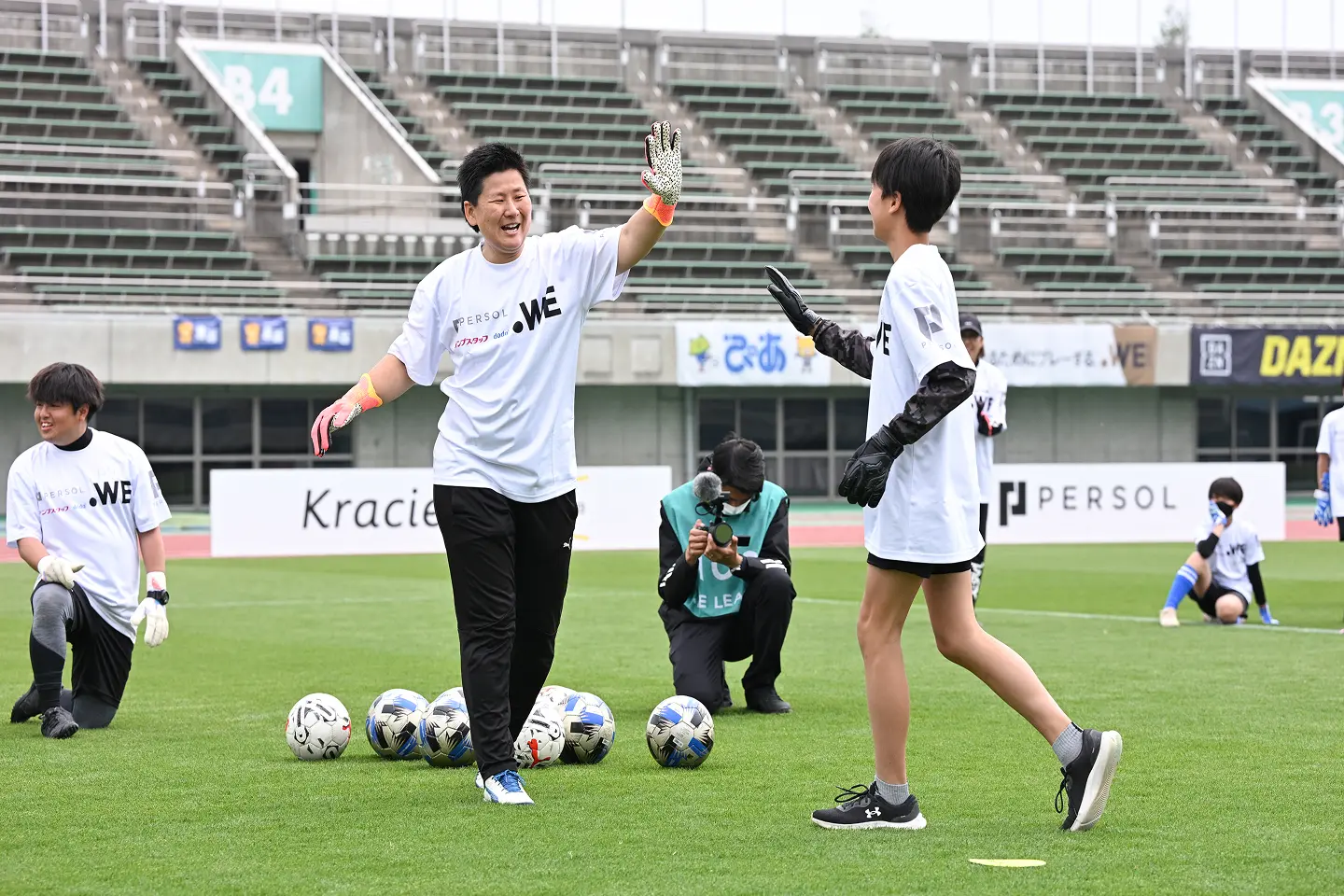 まずは、“女の子がサッカーを続けられる環境が当たり前に存在する未来”ですね。その先に、“女の子の将来の夢にWEリーガー(プロサッカー選手)になりたい”と言う子が増え、女の子が当たり前にサッカーをし、その姿を周りの人たちが応援しているような世界を目指したいです。私が子どものころは周りに女の子だけのクラブはなく、男の子と混じってサッカーをしていました。仲間外れにされたこともありましたが、好きでサッカーをしていたのでそんなことはあまり気にしていませんでした(笑)! 結局はみんな、サッカーが好きで集まった仲間。気づけば仲間外れもなくなっていました。でも、中学生以上になると女子サッカー部やクラブが無かったり、男女の体格に差が出はじめることで混合プレーが難しくなるなど、現実的な壁にぶつかってサッカーを諦める女性もいます。