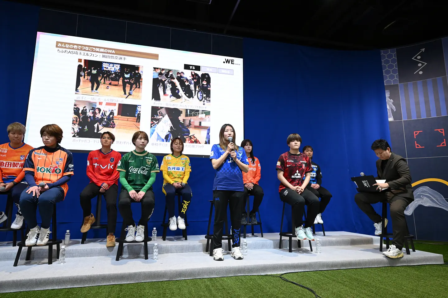 2025年2月にWEリーグと全クラブで、『ALL WE ACTION DAY』を実施。『女子サッカーにおける「する」「見る」「関わる」機会を増やし、多様性の枠を広げる』をテーマにしたトークイベントなどが行われたをテーマにしたトークイベントなどが行われた[写真]WE LEAGUE