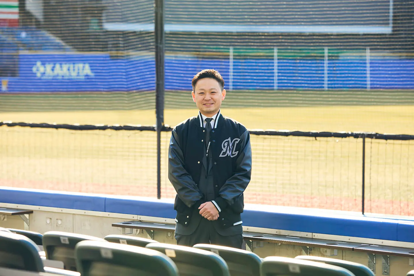 榎本 一度ZOZOマリンスタジアムで試合を観戦した経験があったのが大きかったです。就職してから千葉県に住んでいたのですが、コロナ禍に地域の人を招待する企画がありました。入場制限のためスタンドはがらがらでしたがすごく楽しくて。求人に応募してからは勉強がてら3、4回試合へ行きました。今ではプライベートで友達と観戦するくらいはまっています。