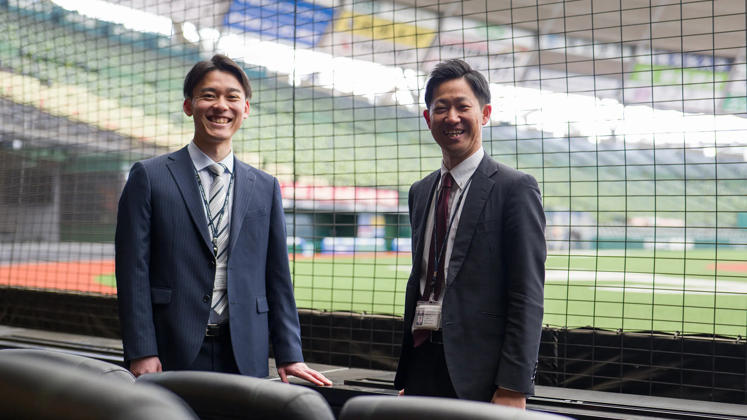 横堀 日本にプロ野球は12球団しかなく、影響力の大きさを改めて感じました。たとえば自分が営業で携わったお客さまの看板が球場に設置されると、テレビ中継で映るだけでなく、ゲームの世界にも登場する。仕事が目に見える形になるので、ものすごくやりがいがあります。私は野球に育ててもらったという感覚があり、プロ野球界に貢献して恩返ししたい。その気持ちが日々満たされています。